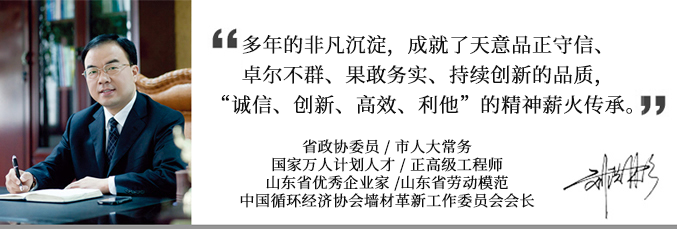 時光荏苒,風(fēng)雨砥礪,多年的非凡沉淀,成就了天意品正守信、卓爾不群、果敢務(wù)實、持續(xù)創(chuàng)新的品質(zhì),“誠信、創(chuàng)新、高效、利他”的精神薪火傳承。持續(xù)發(fā)展的品牌戰(zhàn)略和永不停息的創(chuàng)新步伐成就天意今天的輝煌。