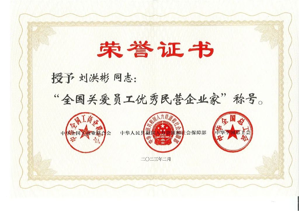 喜報(bào)丨劉洪彬董事長(zhǎng)入選全國(guó)工商聯(lián)、人社部、全國(guó)總工會(huì)編撰全國(guó)關(guān)愛員工優(yōu)秀民營(yíng)企業(yè)家事跡材料