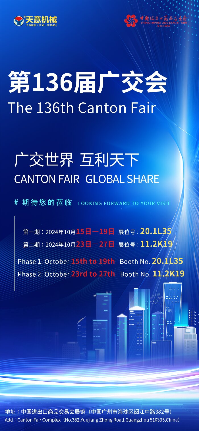 第136屆廣交會(huì)的日益臨近,天意機(jī)械已經(jīng)整裝待發(fā),期待在展會(huì)期間與全球客戶(hù)探討合作機(jī)會(huì),推動(dòng)雙方共同發(fā)展。未來(lái),天意機(jī)械將繼續(xù)秉承“質(zhì)量第一、客戶(hù)至上”的理念,不斷提升自身的技術(shù)實(shí)力和市場(chǎng)競(jìng)爭(zhēng)力,為全球客戶(hù)提供更加優(yōu)質(zhì)的產(chǎn)品和服務(wù)。
