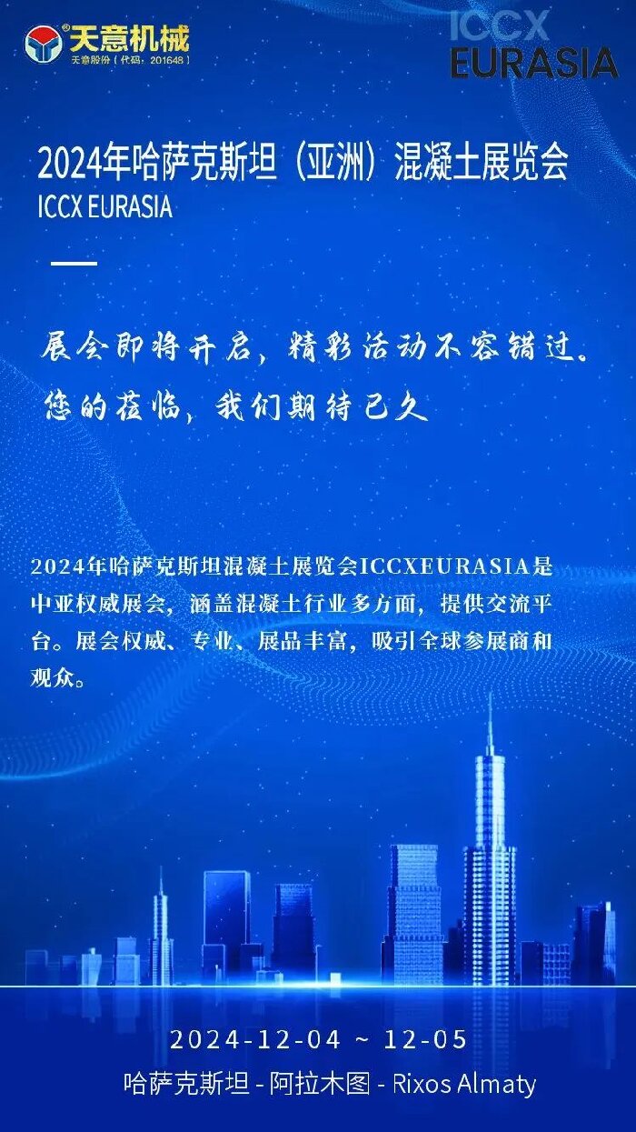 此次參加哈薩克斯坦混凝土展覽會,不僅是展示公司實力和技術(shù)的重要機會,更是開拓中亞市場、尋找合作伙伴的有效途徑。哈薩克斯坦作為中亞地區(qū)的重要國家,其建筑和基礎(chǔ)設(shè)施建設(shè)項目眾多,對混凝土產(chǎn)品的需求量大。天意機械將借此機會,深入了解中亞市場需求,積極尋求與當(dāng)?shù)仄髽I(yè)和專業(yè)人士的合作機會,共同推動混凝土行業(yè)的發(fā)展。