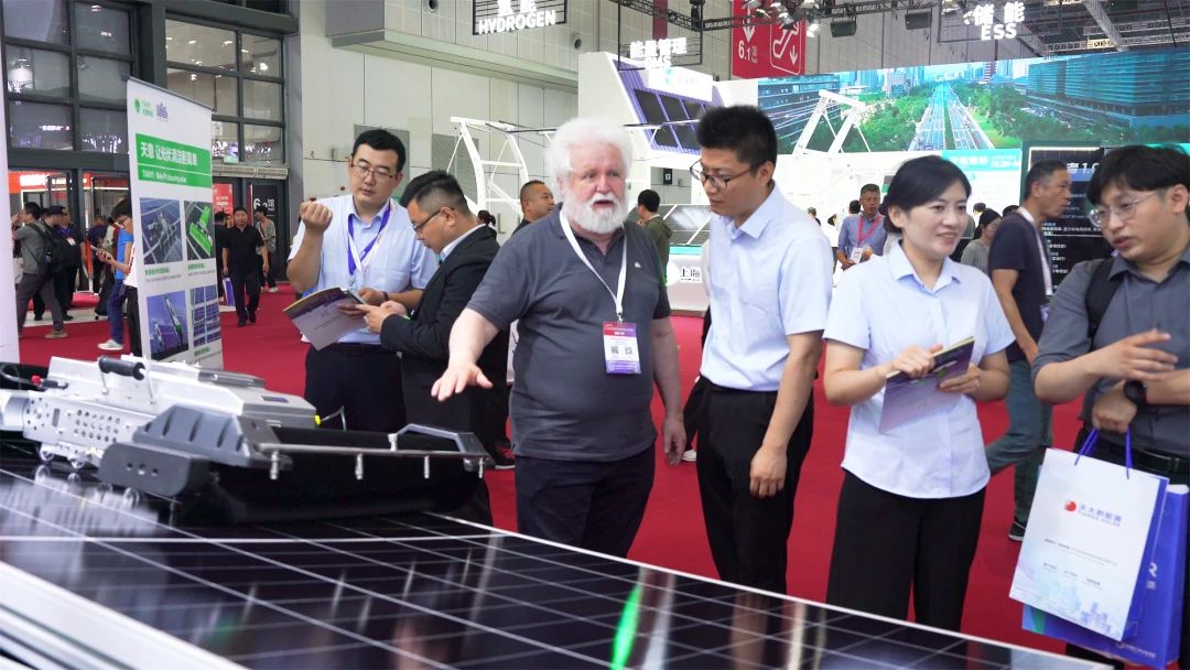 在SNEC PV+ 2025這一光伏行業(yè)的盛會上,天意科技全方位展示了其針對大型地面電站、分布式廠房屋頂、農(nóng)光互補等多種應(yīng)用場景精心研發(fā)的智能光伏清潔機器人系列。這些機器人憑借其卓越的性能,成為了高效解決光伏電站清潔難題的優(yōu)選方案。