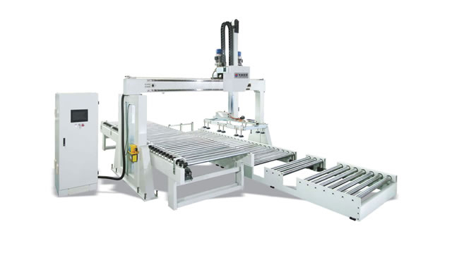 適用于板式家具、平面門、櫥柜側(cè)板、硅酸鈣板、玻鎂板、水泥纖維板等板式工件,配套連線作業(yè)時(shí)進(jìn)行自動(dòng)上料或下料;自動(dòng)電腦控制人機(jī)界面觸摸式顯示屏:調(diào)整故障顯示,運(yùn)行速